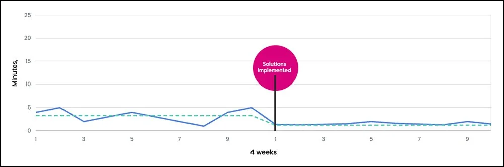 They turned to Kure, an AI-powered process improvement app, to help guide their team through the project. With Kure's offering helpful suggestions, real-time data analysis, and actionable examples, they reduced call center wait times by 54%.