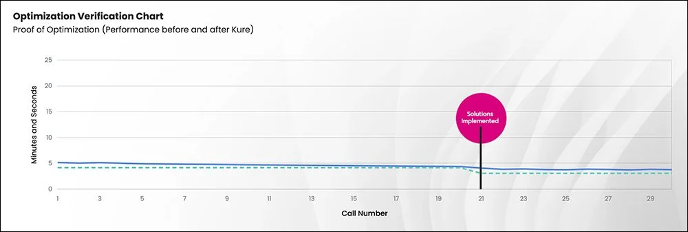 The changes worked—and fast. With help from Kure, the team brought the average call handling time down from 5.2 minutes to just 4.42 minutes—a 15% improvement.