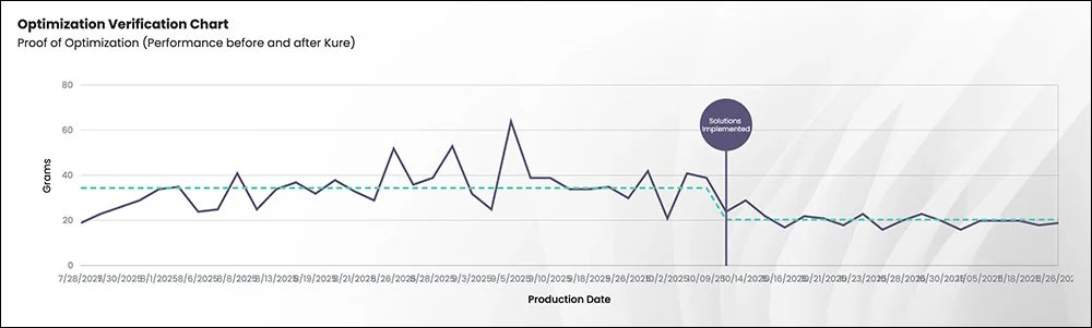 Second, there was no clear reaction plan when piece-weight data trended up or down. Teams could see the numbers—but did not have a standardized response.