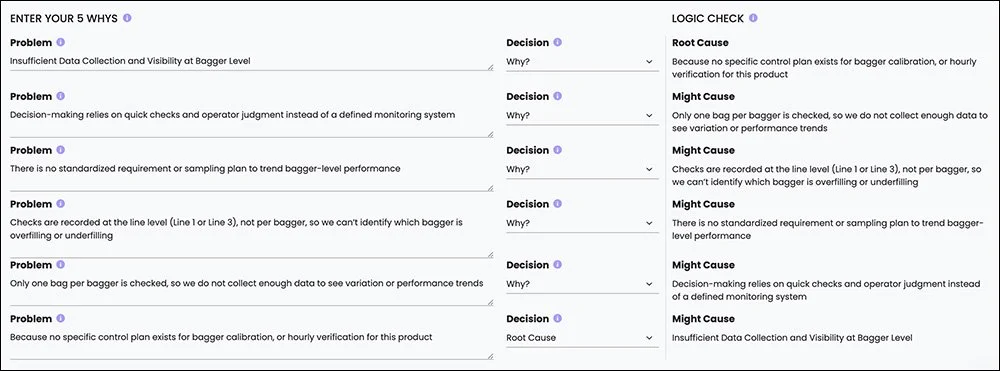First, there was no defined control plan for bagger calibration and hourly verification. Without consistent checks, weights gradually drifted.