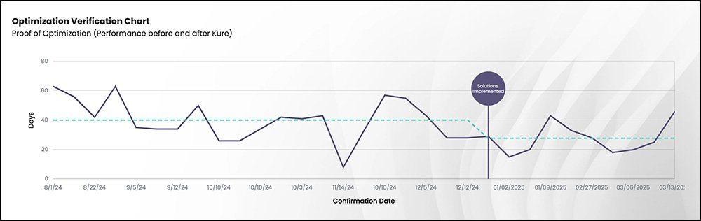 Using Kure, the team reduced the review cycle time from an average of 40 days to just 27 days—a 33% improvement.