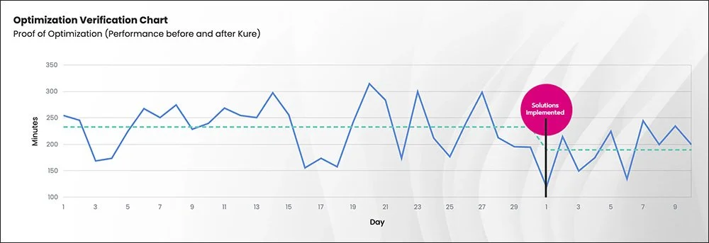 Once changes were in place, Kure’s Verification tool confirmed the success of the project—showing a 20% reduction in LOS and improved patient flow.