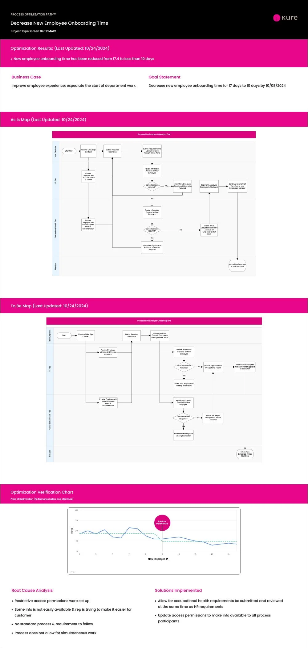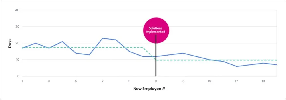 Problem: Onboarding new employees took to long—over 17 days. This excessive time frustrated new employees and impacted productivity, ultimately, impacting patient services.