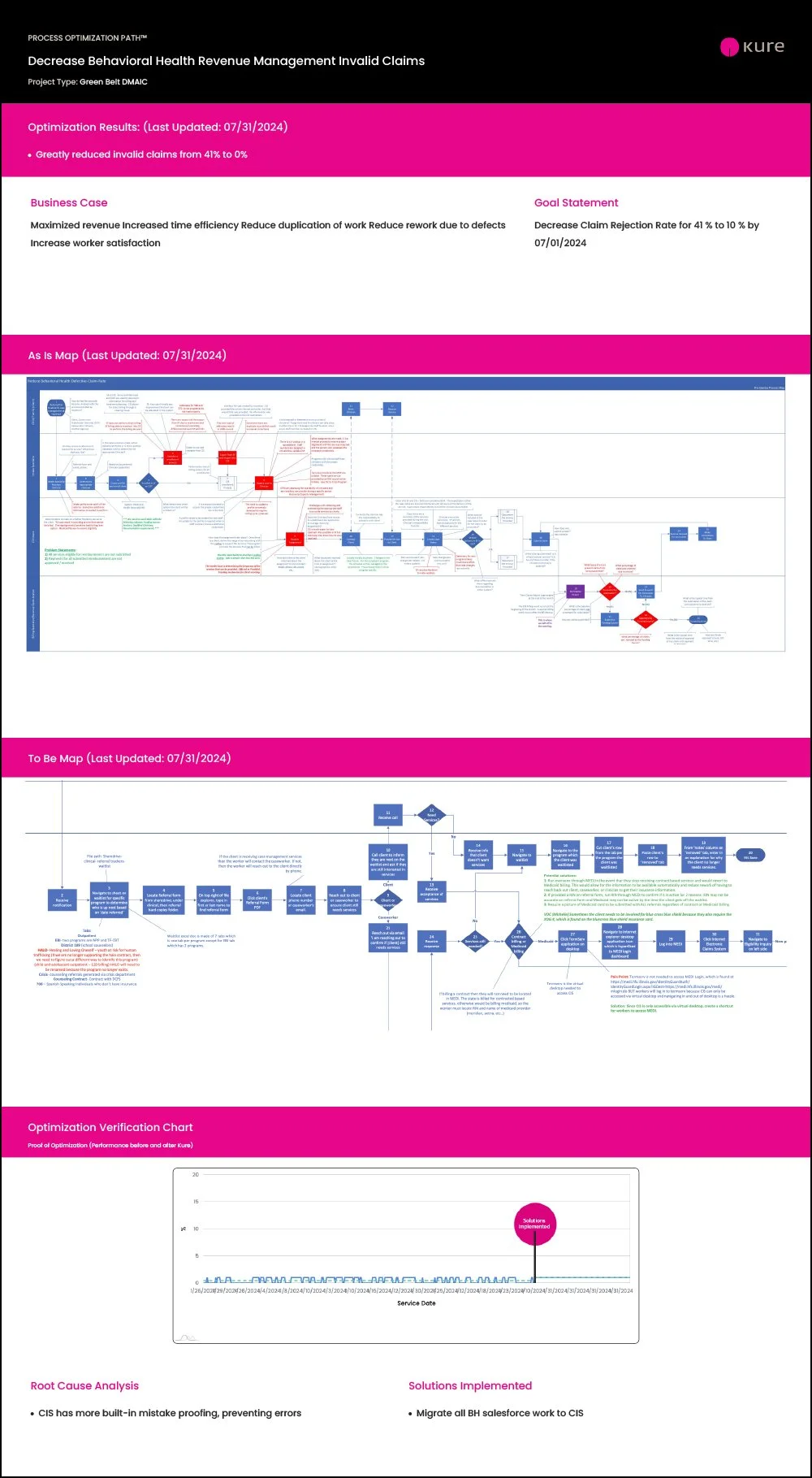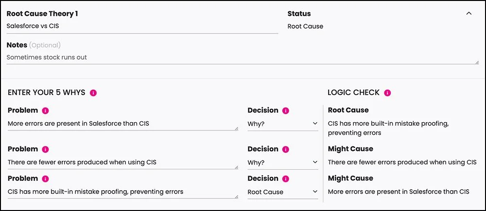 Behavioral health claims were processed using two systems: Salesforce and CIS. Using the 5 Whys technique they determined a potential root cause was that CIS seemed to have more ability to catch error than Salesforce.