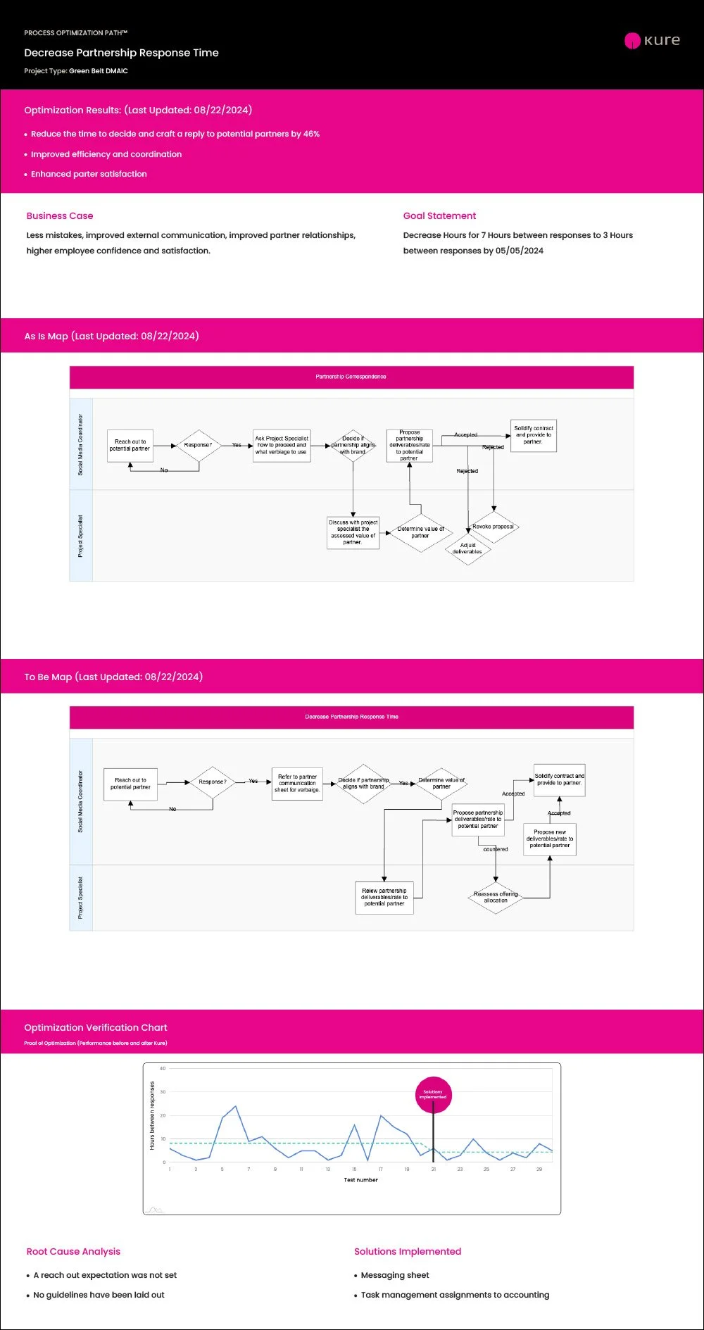 By using a combination of Kure, an AI-powered workflow tool, and GLSS Green Belt Training & Certification, the organization managed to reduce response times by 46%. This improvement led to better coordination and increased partner satisfaction.