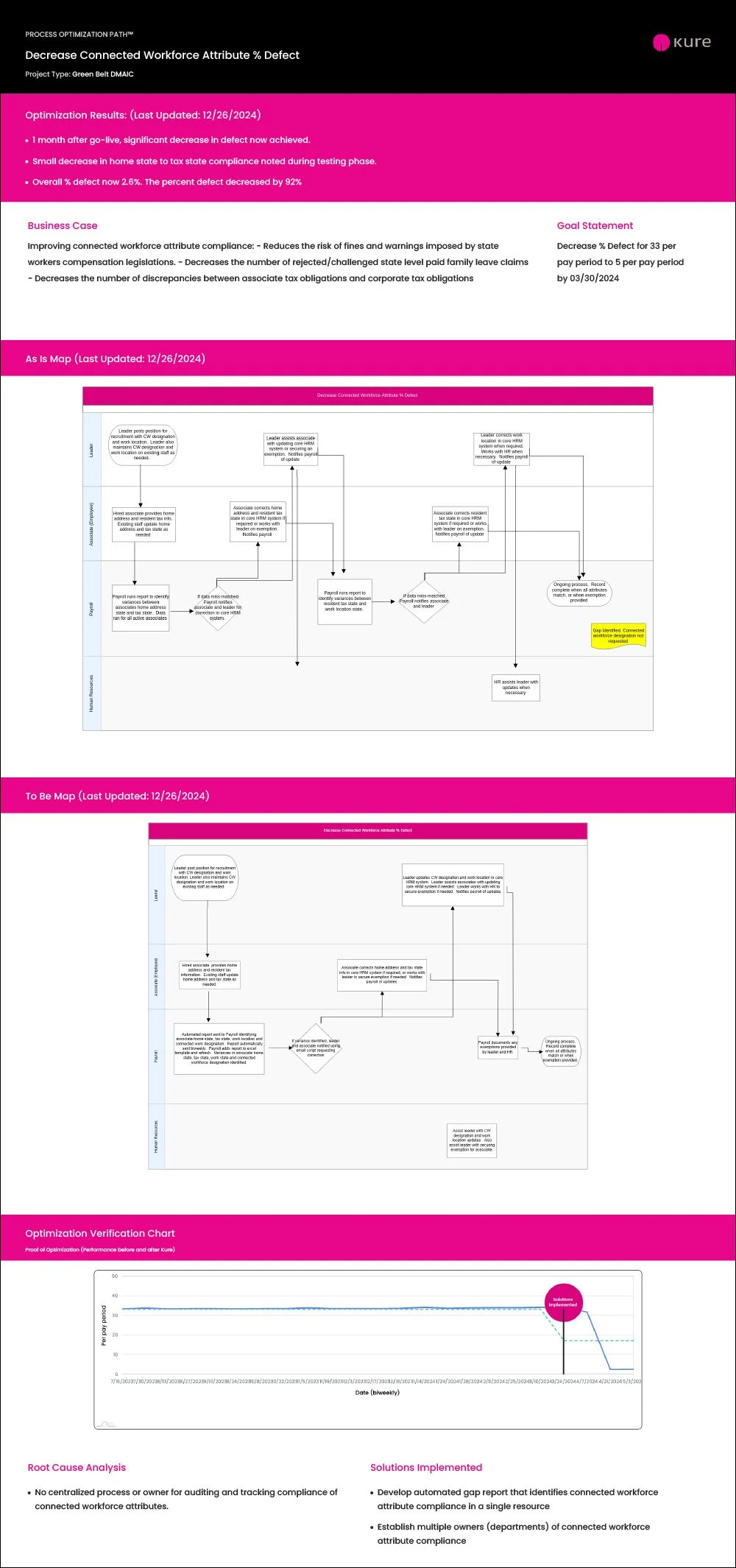 92% Reduction in Defects: Within just one month, the compliance defect rate dropped from 34% to 2.6% per pay period, thanks to Kure’s intelligent workflow and centralized data tracking.