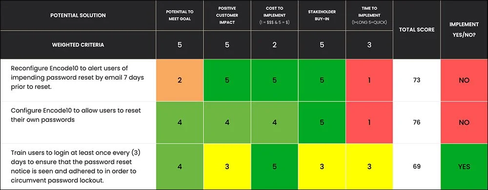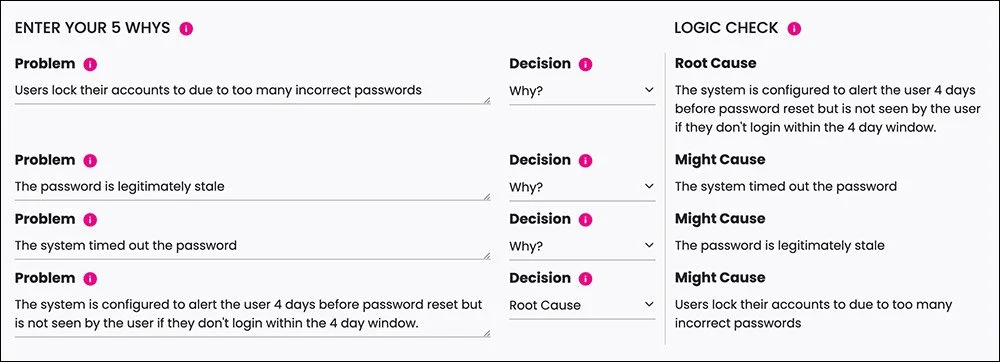 To solve the problem effectively, the team first needed to understand why users were forgetting their passwords so frequently. Using Kure’s automated DMAIC (Define, Measure, Analyze, Improve, Control) methodology, they uncovered two key root causes:
